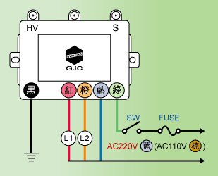 - GJ-202藍::電源輸入線AC-220V(共用線)