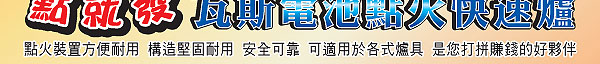 點就發瓦斯電池點火快速爐詳細規格及說明 |